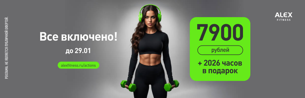 Только для новых клиентов предоставляется возможность бесплатного гостевого посещения клубов сети. Реклама. Не является публичной офертой.
